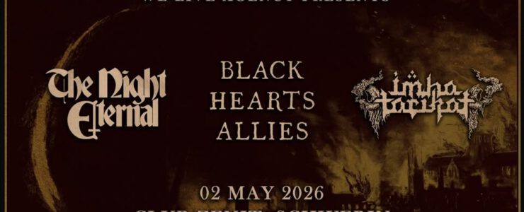 Das Ruhrpott-Kollektiv kommt nach Schwerin! Die zwei jungen Bands haben sich im Metal-Underground bereits mit ihrer Bühnenpräsenz und Top-Platzierungen ihrer Alben einen Namen in ihren Genres gemacht. THE NIGHT ETERNAL vermischen klassischen Heavy Metal mit düsterer Atmosphäre und dunklen Melodien. IMHA TARIKAT stehen für kompromisslosen Black Metal mit intensiver Energie: treibend, aggressiv und dennoch voller Tiefe. Zusammen sind beide Bands wie zwei Seiten einer Münze: von Anfang bis Ende geladen mit roher Energie und Emotionen. Schwerin: Macht euch bereit für die Black Hearts Allies. Lasst euch von diesem Package abholen!