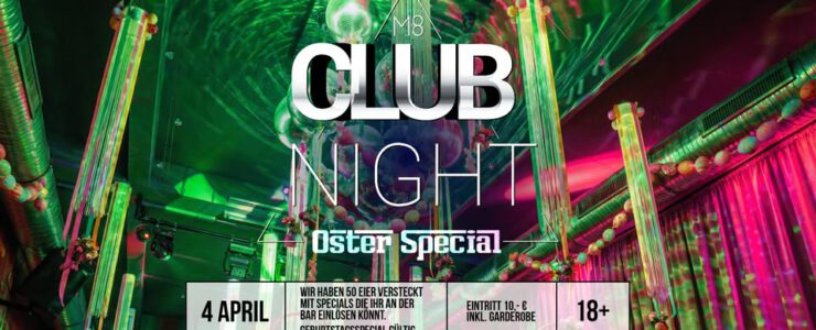 M8 Clubnight Oster Spezial mit bestem Musikmix aus Black, Electro & Chart mit Klassikern der 80er und 90er.