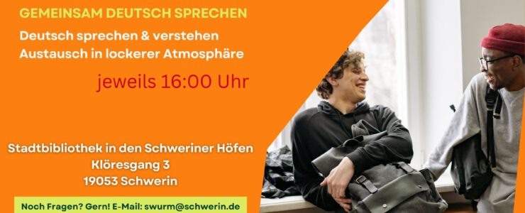 In entspannter Atmosphäre Deutsch lernen und gleichzeitig neue Leute kennenlernen – das ist im SprachCafé der Stadtbibliothek möglich. In kleinen Gesprächsrunden tauschen sich Teilnehmende über Alltagsthemen aus, verbessern spielerisch ihre Sprachkenntnisse und gewinnen mehr Sicherheit im Sprechen. Die lockere Umgebung erleichtert den Austausch und fördert das Lernen ohne Druck. Eingeladen sind alle, die ihre Deutschkenntnisse verbessern möchten – unabhängig von Sprachniveau oder Herkunft.